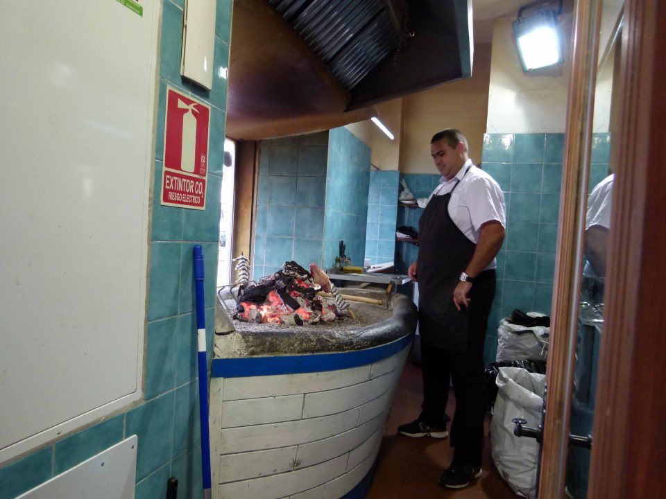 frisch ausgesucht, aufgespießt und über das Feuer gestellt.
