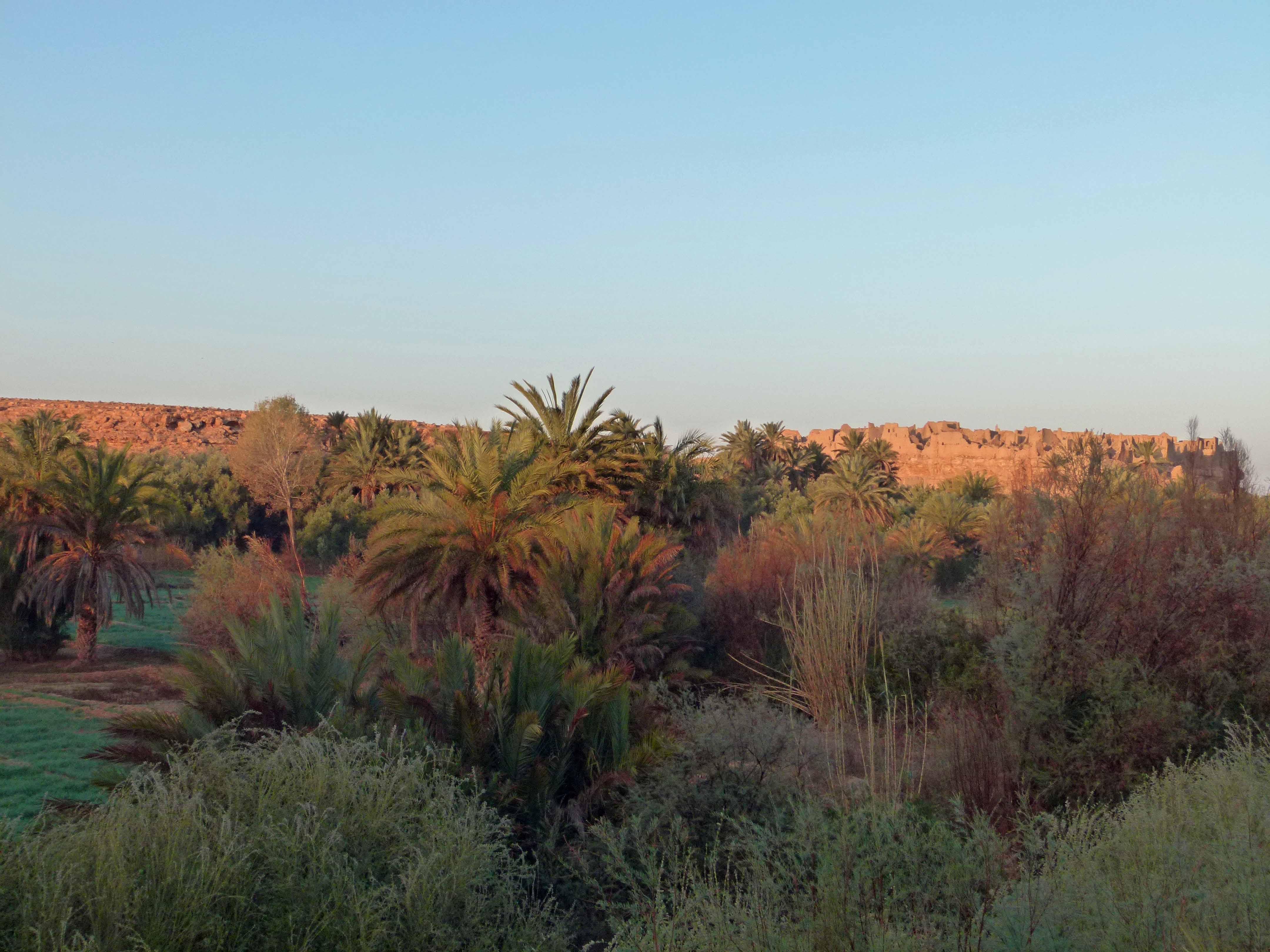 Blick aus WOMO bei Sonnenaufgang auf die Ksar