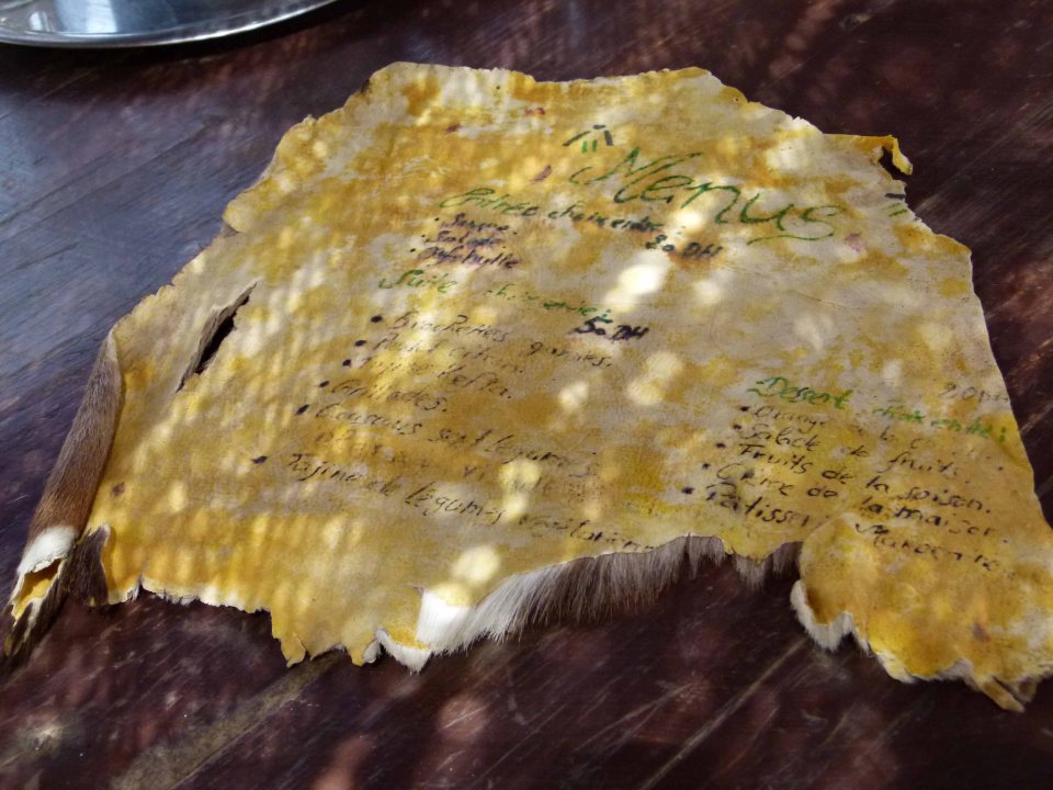 Das Menü entnimmt man einem Stück Ziegenfell.