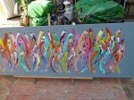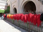 - frisch eingefärbte Wolle hängt zum trocknen.