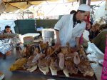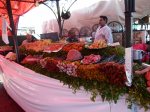 - Dieser Stand mit Fisch und Fleisch lockt uns an