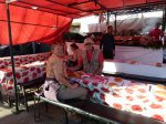 - Aus allen Ecken kommen die Leute mit Garküchen, Tischen und Bänken.
