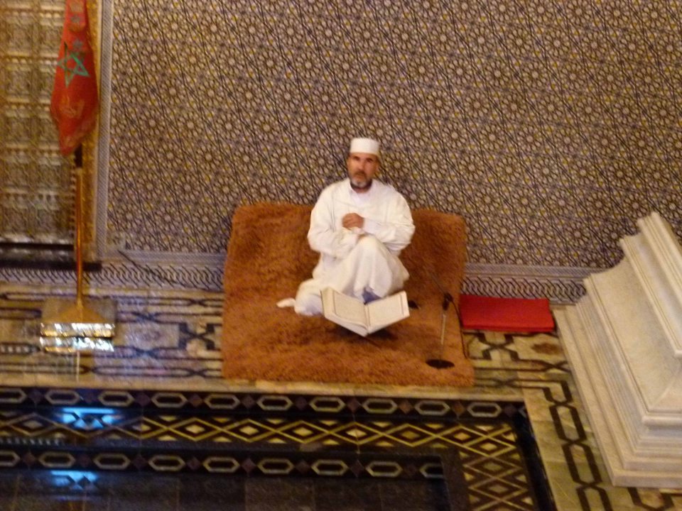 Den ganzhen Tag muss diese Mann aus dem Koran vorlesen. Die Seite darf er selbst wählen.