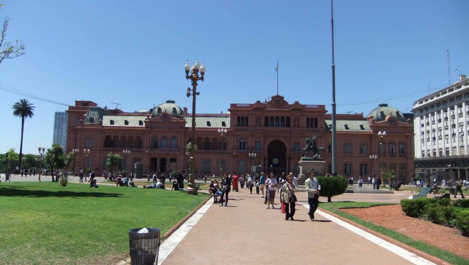 Casa Rosada-die rote Fassa des Präsidentenpalastes entstand durch einen Mix mit Ochsenblut. Eva Perón sprach vom Balkon aus.