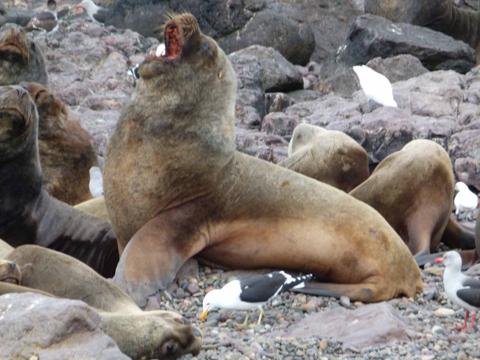 Felsenpinguine und Seelöwen