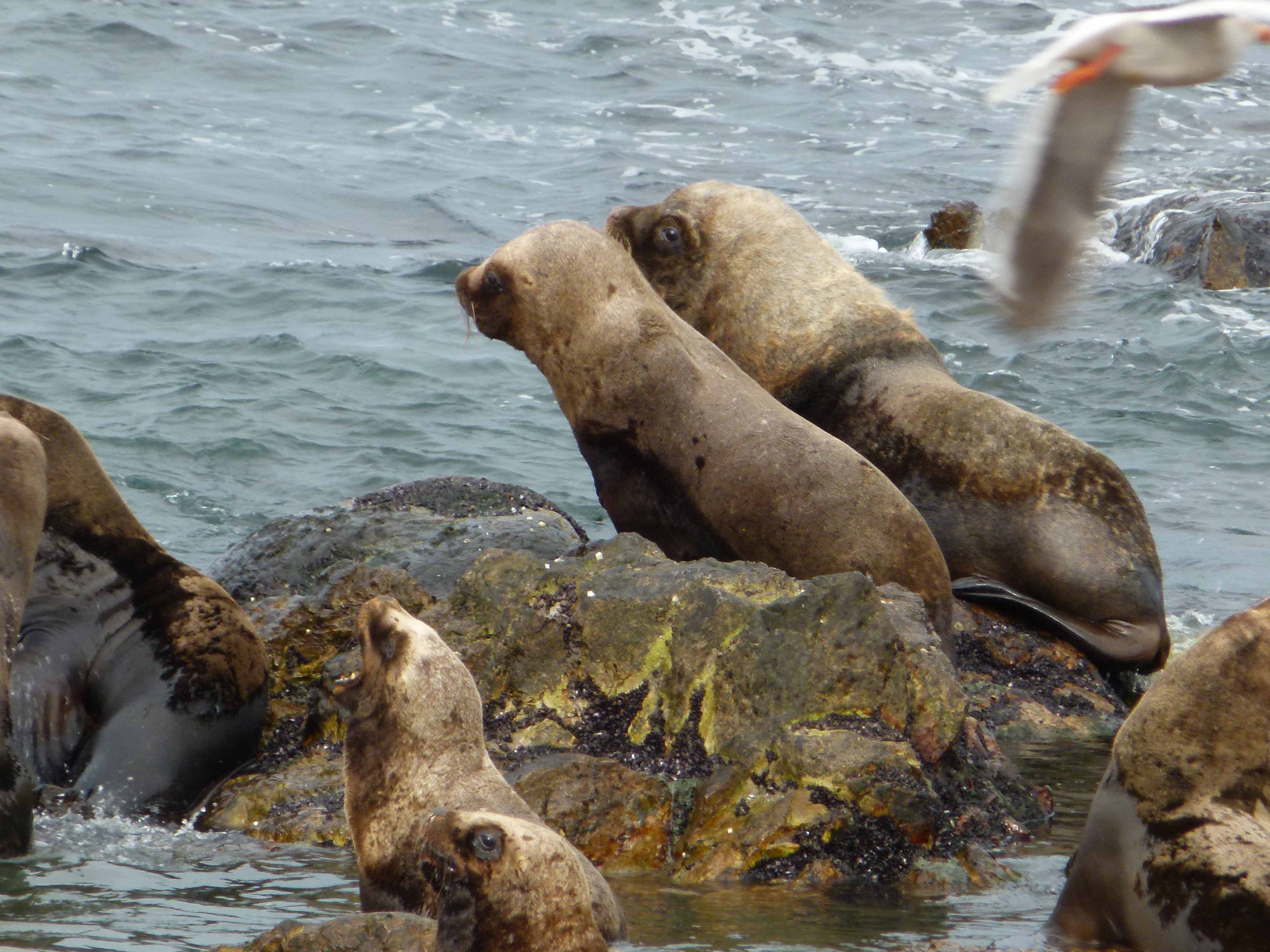 Felsenpinguine und Seelöwen