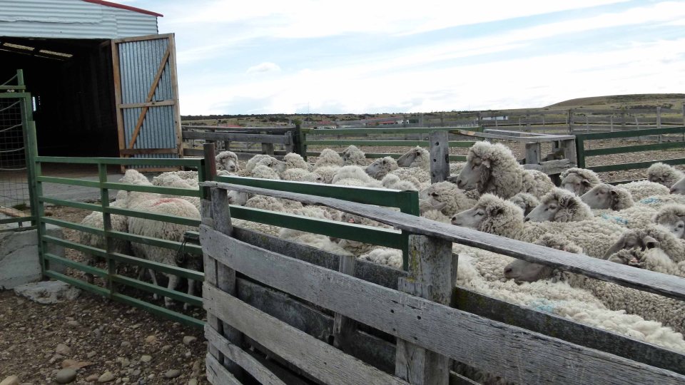 Gauchos grillen Lamm am Spieß auf der Estancia Librún