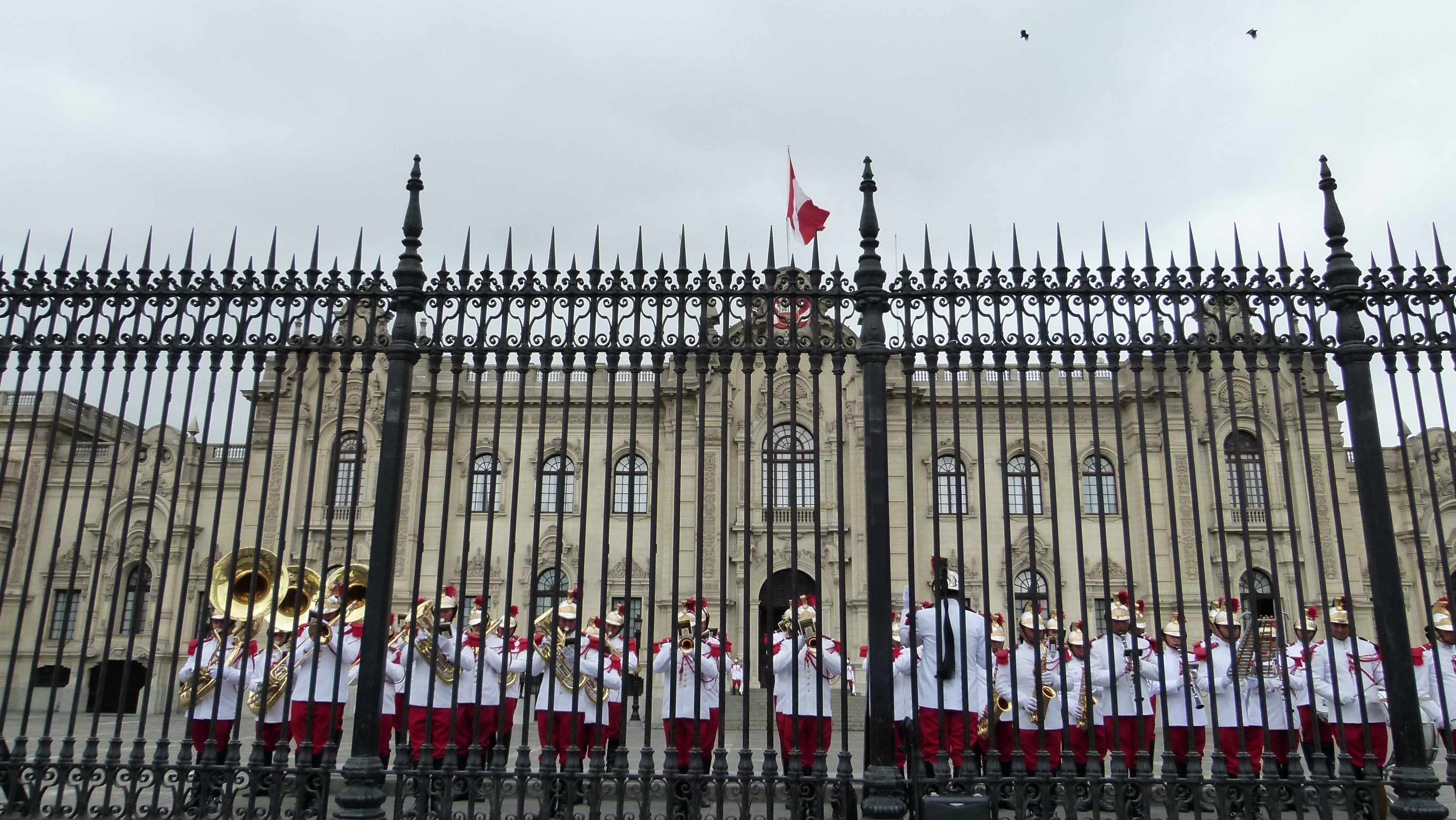 Zum Wachwechsel spielt eine Blaskapelle.