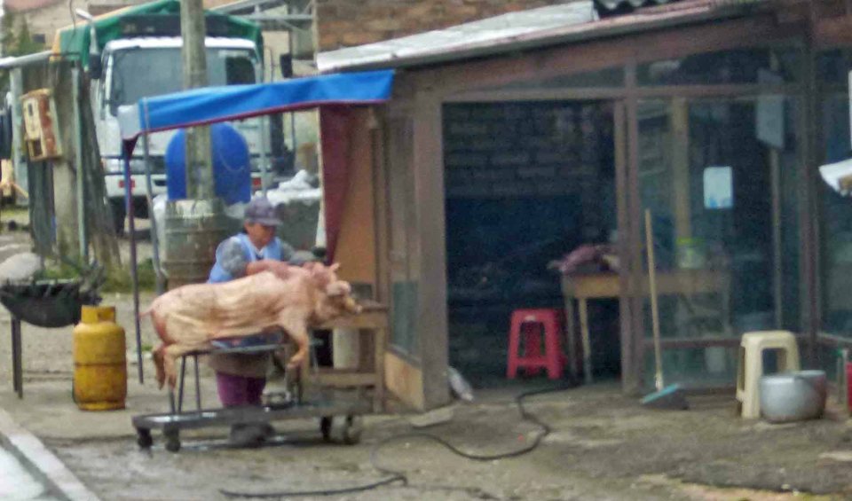 Schwein am Spieß & Männer mit Zopf