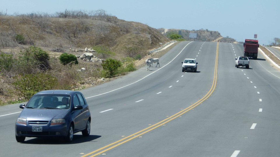 Auch hier sind Kühe auf der Fahrbahn.