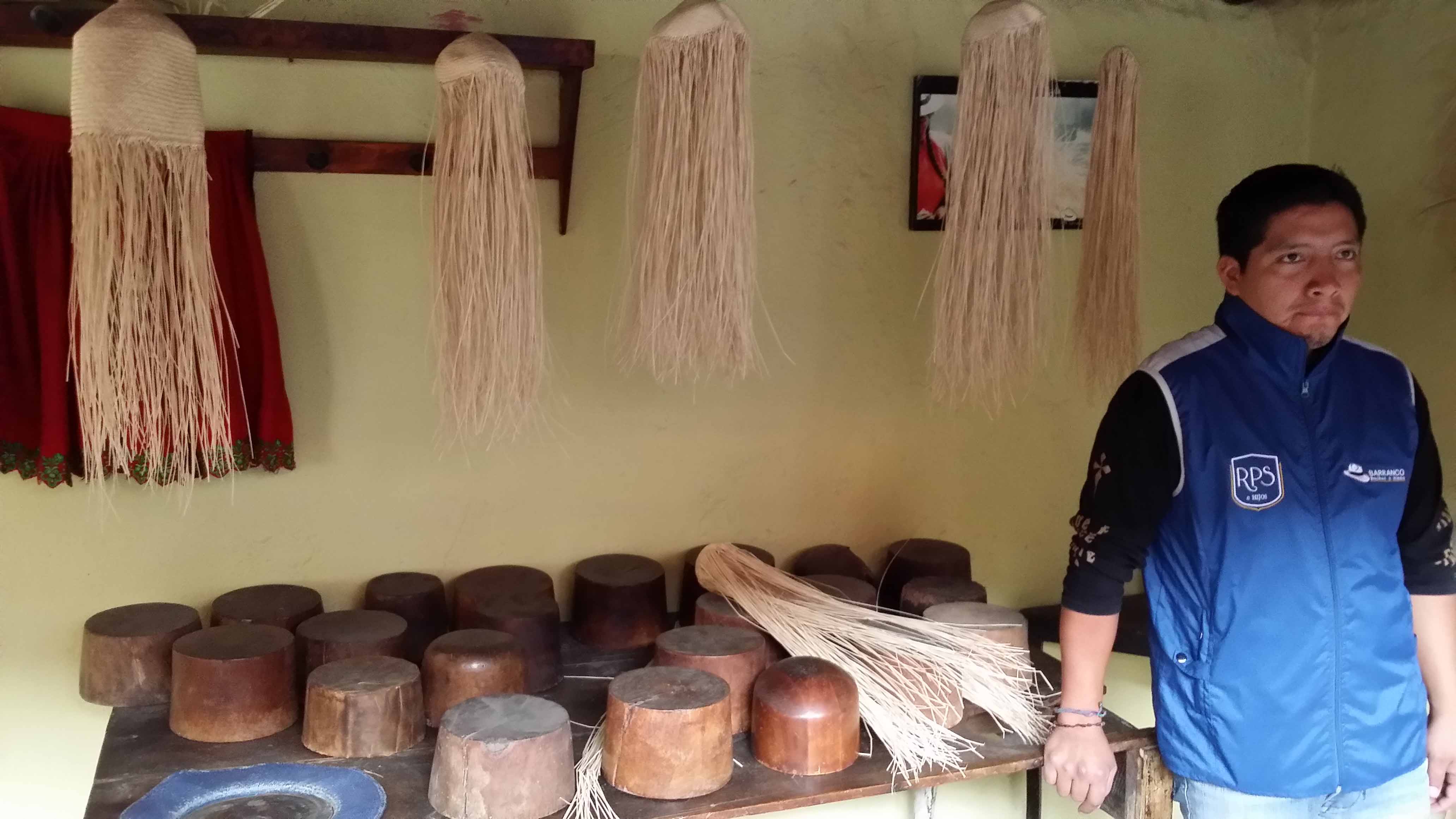 Wir bekommen die Herstellung der Hüte erklärt.