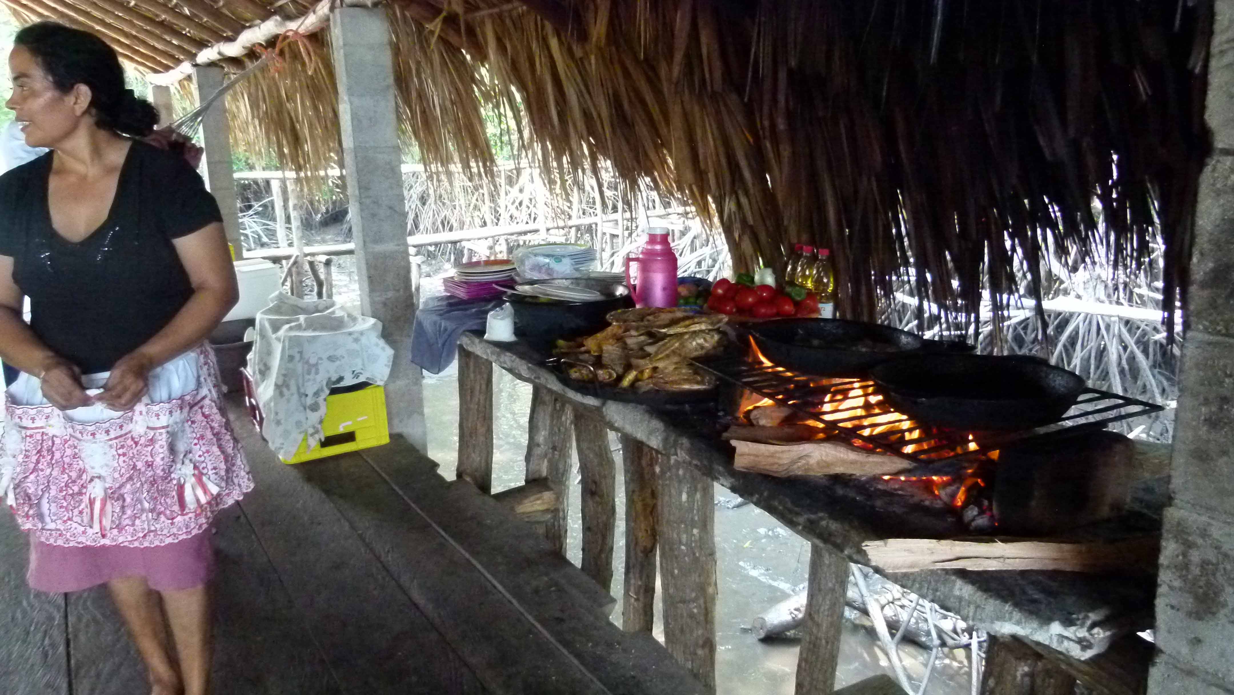 Die Köchin brät uns frischen Fisch.
