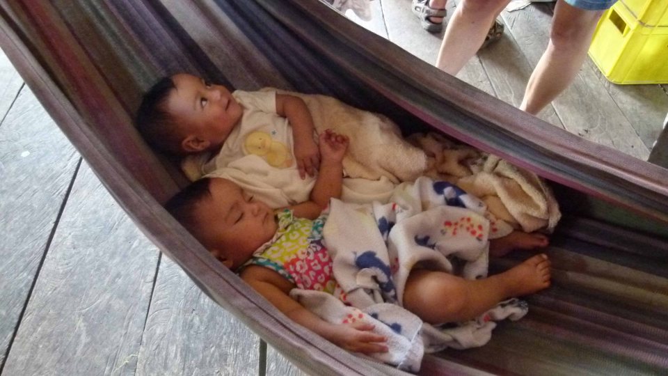 Ihre Zwillinge schlafen in der Hängematte