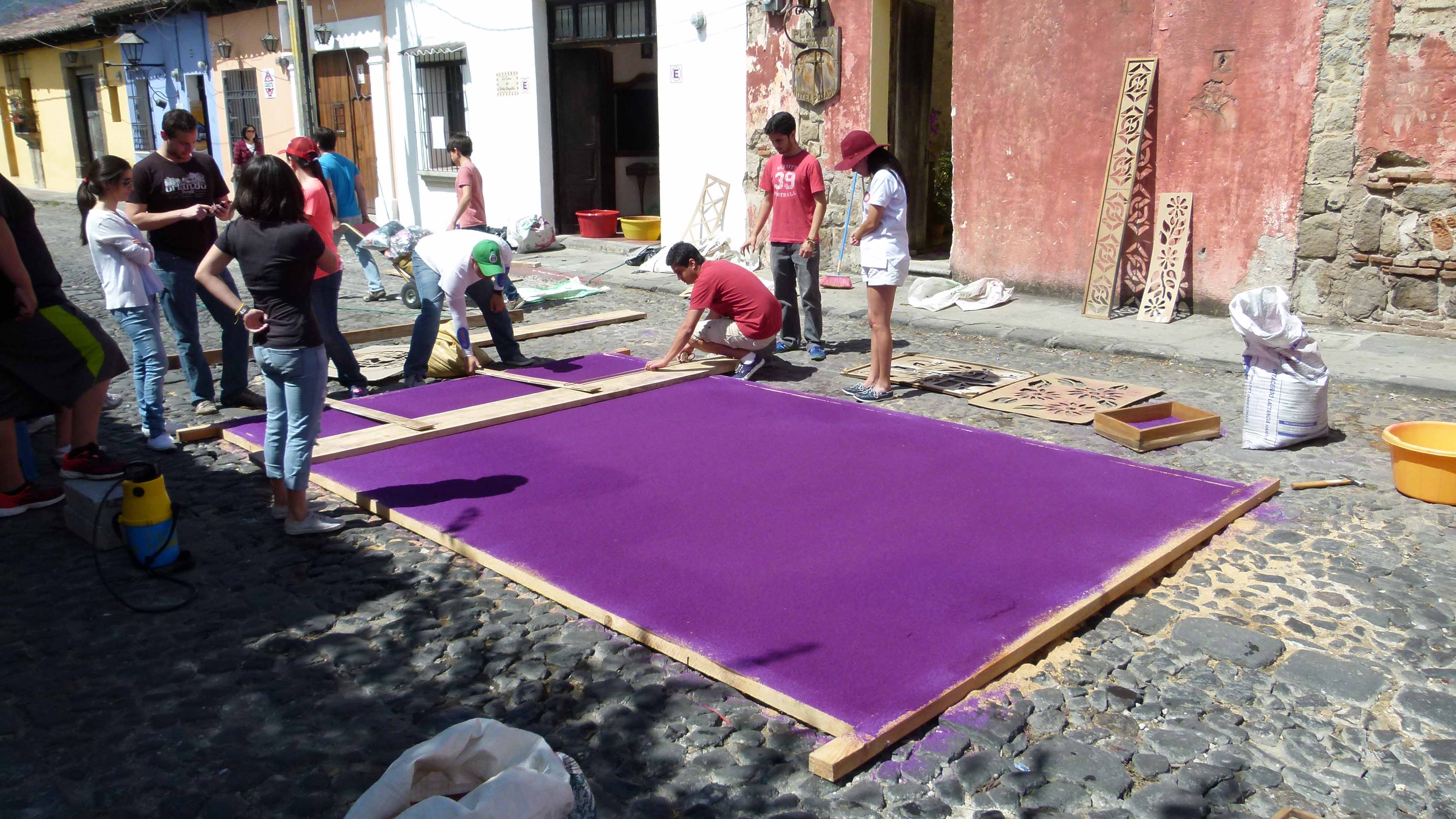 Blumenteppiche werden vorbereitet.