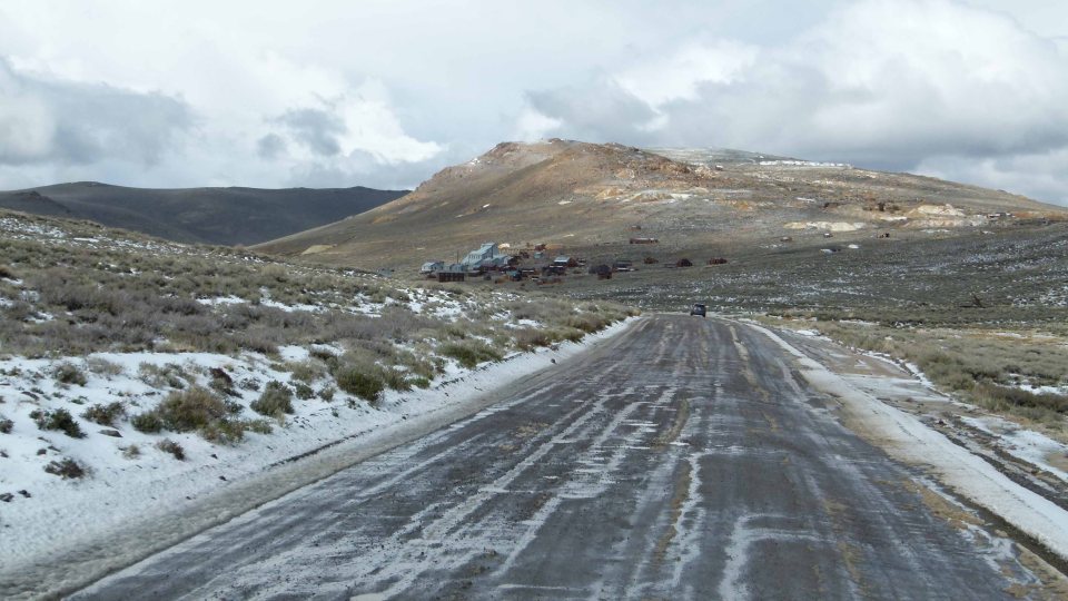 Auf dem Weg nach Bodie beginnt es zu schneien.