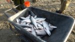- Der Lachs wird gleich filetiert.