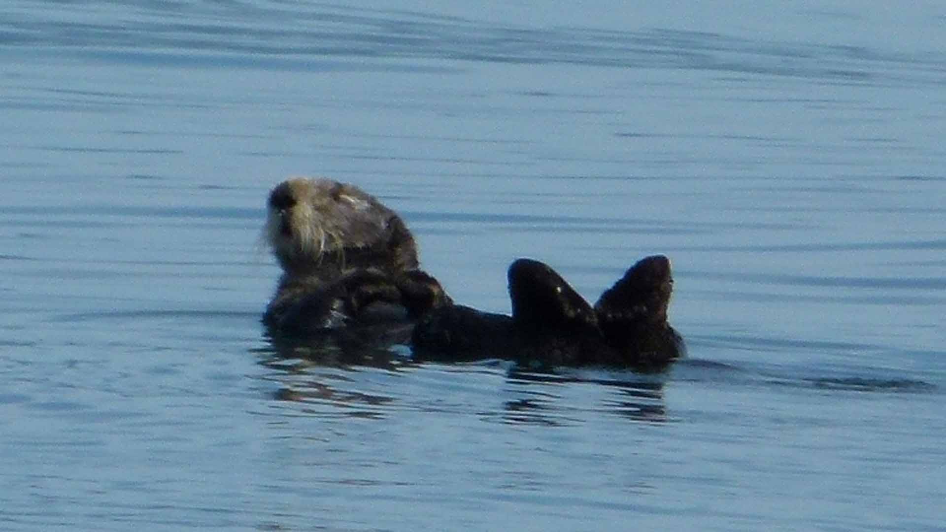 Der Seeotter schaut nur kurz auf