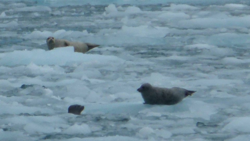 Seerobben sonnen sich auf dem Eis.