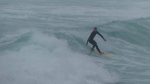 - Ein Surfer traut sich in die Wellen.