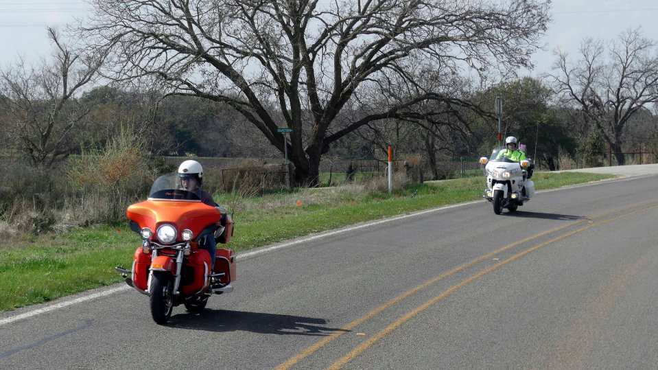 Wir teilen die Strasse mit Motarradfahrern.