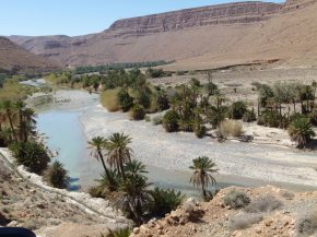 Das Draa-Tal gehört zu den eindruckvollsten Landschaften Marokkos. Es geht immer entlang des Flusses, vorbei an Palmenhainen und Lehmdörfern. FOTO zu klein? Klick drauf!